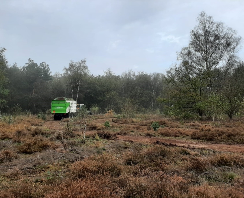 Welke maatregelen zijn er met de POP-subsidie genomen? Van Alphen: “Om optimaal resultaat te bereiken hebben we diverse strategieën tegelijkertijd gevolgd. We hebben bij de meest stikstofrijke delen van de heide het strooisel en vegetatie – met daarin het opgeslagen stikstof – verwijderd. Op zo’n 5 procent van de oppervlakte van het natuurgebied hebben we steenmeel gestrooid. Steenmeel zorgt voor een langzame aanvulling van door uitspoeling verdwenen voedingstoffen en voorkomt verdere verzuring. Deze nutriënten proberen we duurzaam in het systeem te behouden door bomen te planten met rijk strooisel. Deze bomen nemen de voedingstoffen op en laten deze in de herfst weer vallen via hun bladeren. Bij vertering van deze bladeren komen de stoffen weer vrij en worden deze vervolgens weer via de wortels opgenomen: een nutriëntenkringloop. Tot slot streven we naar ‘hervernatting’, door sloten te dempen of verondiepen.”